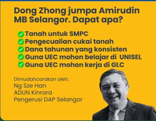 Bila Dong Zong berjumpa dengan Menteri Besar Selangor, hasilnya cukup lumayan. Dalam satu sesi mesra di kediaman MB, inilah yang mereka bawa pulang: